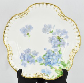 blue painted floral centre with rin heightened in gild, signed J.Hackley. Diameter 23.5cm. -