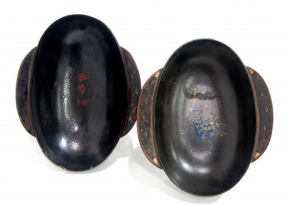 Lot #314 - Two Lacquer Ear Cups, of Elliptical Form, One with an Inscription on the Interior, Han Dynasty, BC206-220AD