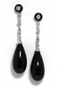 Lot #341 - A Pair of 18ct White Gold Onyx & Diamond Drop Earrings