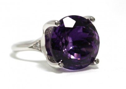 one round amethyst 9.85ct with six round brilliant cut diamonds, 0.07ct mounted in a white gold ring