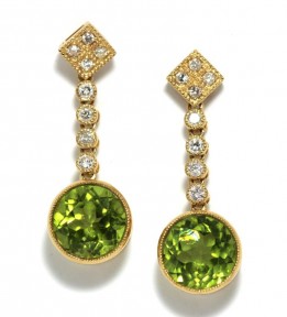 Lot Description:A Pair of 18ct Yellow Gold Peridot & Diamond Drop Earrings