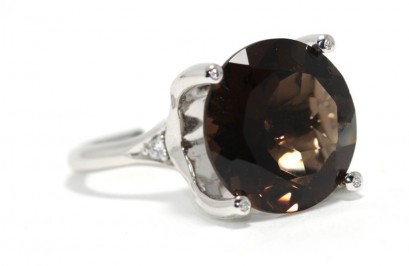 Lot Description:A 9ct White Gold Smokey Quartz & Diamond Ring