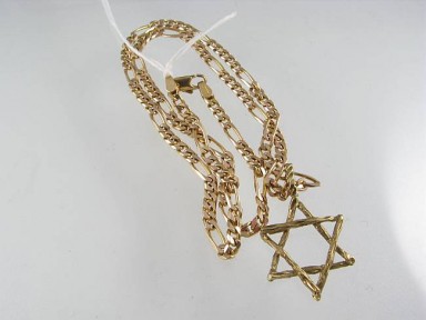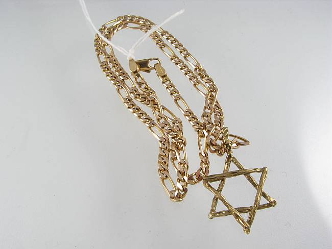 with 9ct gold Star of David pendant. Chain length 46cm. Total wt 12.7g. -