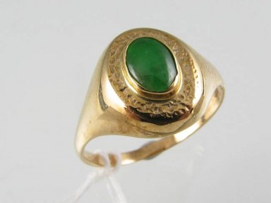 Lot Description:A 9ct Gold And Jade Dress Ring
