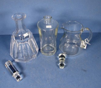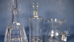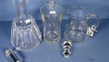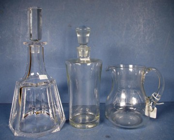 Lot Description:Two various glass decanters & water jug
