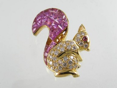 Lot #285 - A Pink Sapphire And Diamond Squirrel Brooch