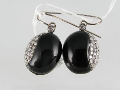 Lot Description:A Pair Of Onyx And Diamond Oval Earrings