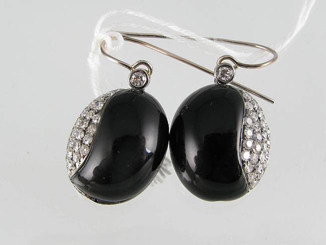 Lot #340 - A Pair Of Onyx And Diamond Oval Earrings