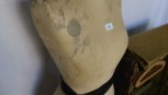 calico upholstered with stencilled numbers and maker's details Bust Girard, Paris, adjustable height on metal tripod stand, -