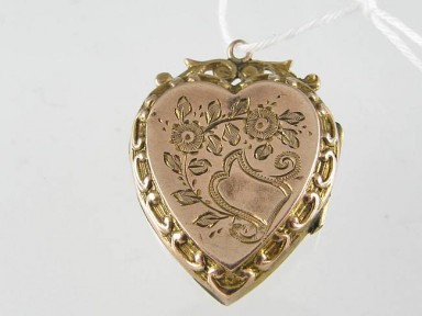 Lot #380 - A 9ct Gold Engraved Heart Locket