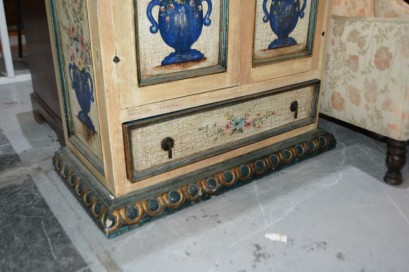 French Provincial style, featuring 4 x hand painted floral motifs, over a single drawer base, complete with adjustable timber shelves, 190cm x 90cm -