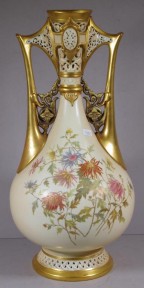 Lot Description:Large Royal Worcester ivory blush twin handle vase