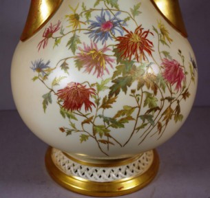 with decorative pierced decoration to the top and hand painted floral base, height 45cm approx -