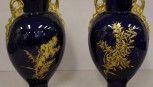 gilt decoration of butterflies in foliage, on cobalt blue ground. (1 vase restored, the other with small hairline to rim). Height 27cm approx (each). -