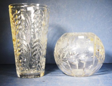 together with a Bohemian cut crystal bowl vase, height 28cm approx (tallest) -