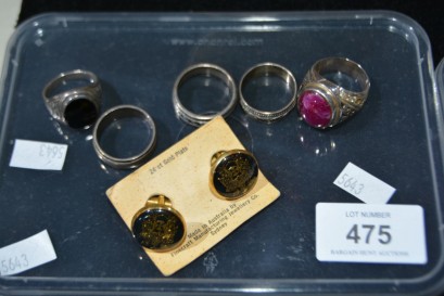 incl. 2 set with semi-precious stones and a pair of 24ct gold plated cuff links -