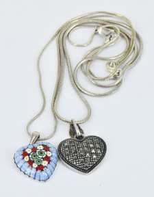 a millefiori one and one set with marcasite, on sterling silver. Total weight 25.9g. -