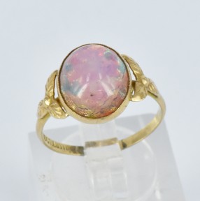 cabochon set in 10ct yellow gold band ring. Size N-O. Weight 2.4g. -