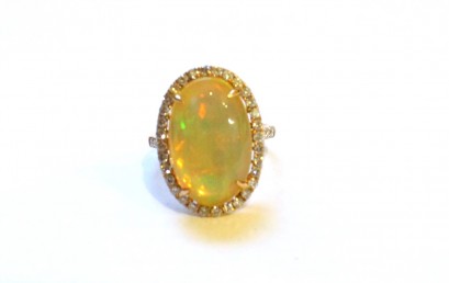 Lot Description:An 18ct Rose Gold Opal & Diamond Ring