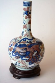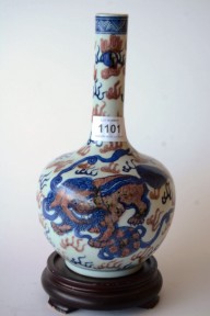 Lot Description:Red & blue vase decorated with