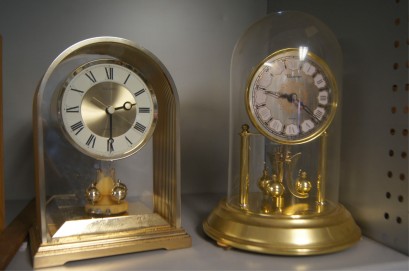 New Master, both with anniversary style pendulums, one quartz movement, and one dome style mechanical with built-in winder -