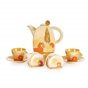 Lot Description:Seven Piece Clarice Cliff Bizarre Capri Coffee Set C. 1935