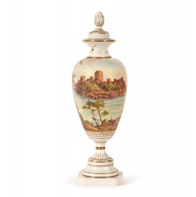 Lot Description:An Urn Shaped Lampbase, Royal Worchester Hand Painted and Signed by Raymond Rushton