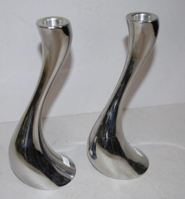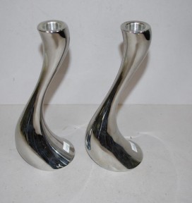Lot Description:Pair Georg Jensen stainless steel candlesticks