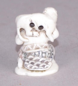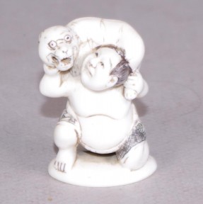standing man with tiger, signed to base. Export of this item may be subject to CITES approval. Height 5cm approx. -