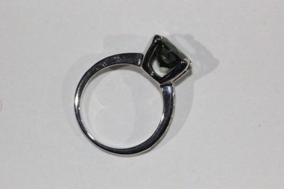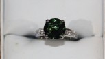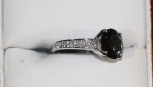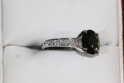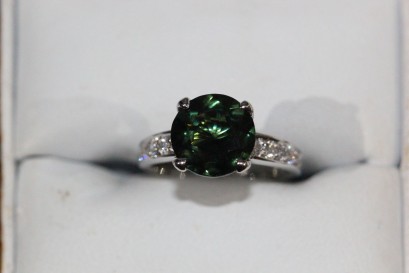 set with a central 2.90 cts green sapphire, bordered by 12 brilliant cut diamonds, weight .24cts, weight 3.4grams, ring size H, retail replacement value $7500, incl. valuation certificate -