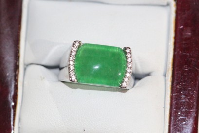 Lot Description:Large gents chrysophrase & cubic zirconia