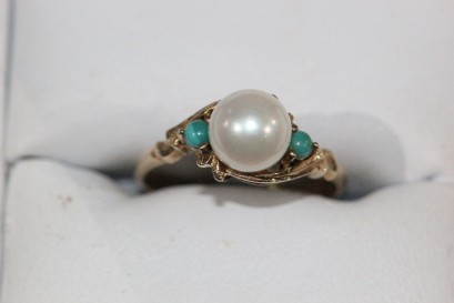 Lot Description:Vintage 9ct cultured pearl & turquoise dress ring