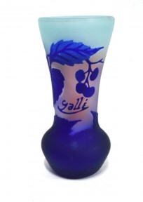 Lot #601 - A Small Blue, Pale Pink & White Vase marked Galle