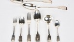 'Fidel' pattern, comprising 14 entrée forks, 14 table spoons, 14 table forks, 14 tea spoons, 16 dessert spoons, two gravy ladles, two serving spoons (76)