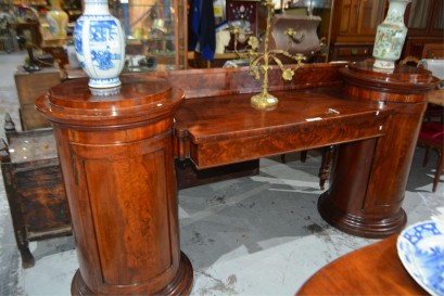 Lot Description:Rare Regency mahogany sideboard with twin circular pedestals
