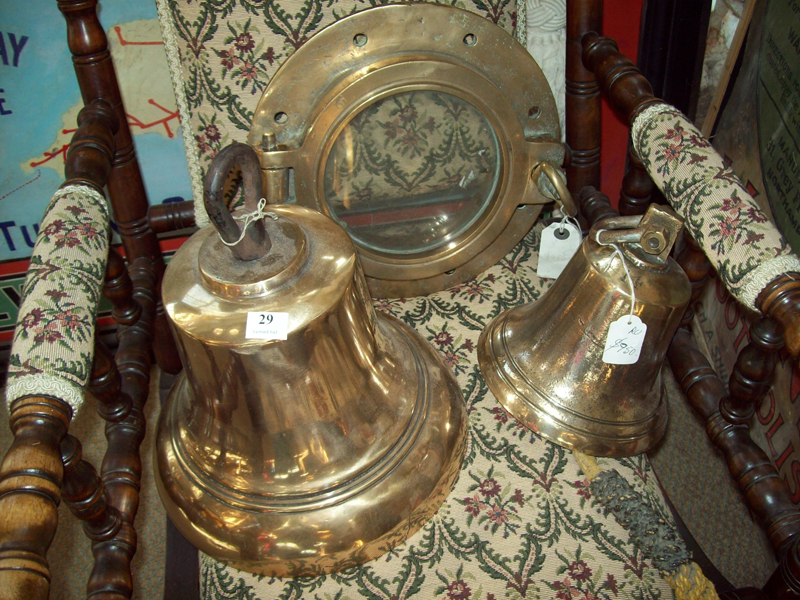 Lot #29 - A Brass Port Hole And Two Antique Ship Bells