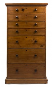 Lot Description:A Colonial tallboy chest of seven drawers, kauri pine, huon pine and blackwood, 19th century