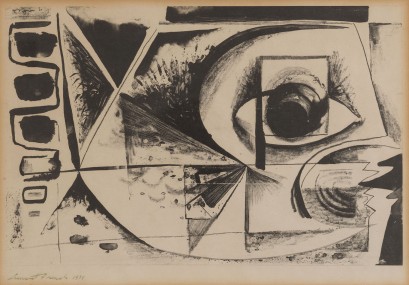 Australia Gallery label verso no. 1008; signed lower left "Leonard French 1956" -