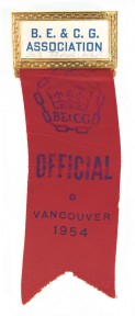 "B. E. & C. G. Association", with red ribbon printed "OFFICIAL/VANCOUVER 1954". -