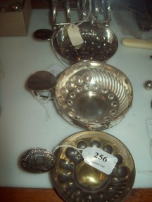 Lot #256 - Three Silver Plated Wine Tasters And One Silver Plated Toast Rack