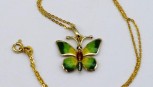 Lot #149 - Enamelled gold butterfly pendant and chain