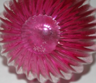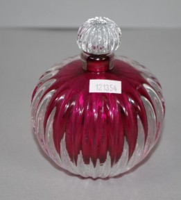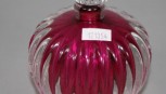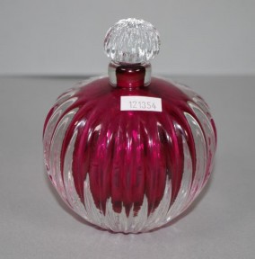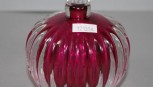 reeded decoration, in clear glass over burgundy glass interior, clear glass stopper, inscribed to base. Height 12cm approx. -