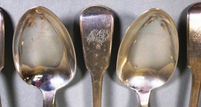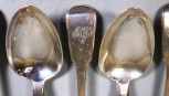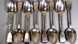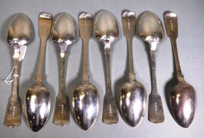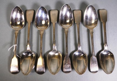 Lot #1330 - Set eight George IV sterling silver soup spoons