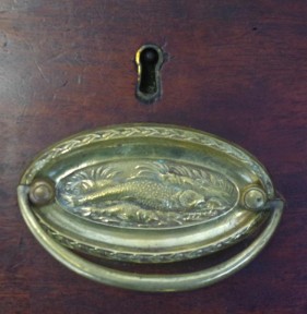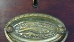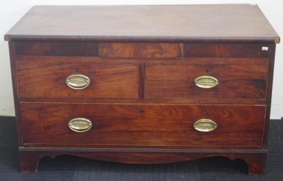with two short drawers over one long. 99cm wide, by 50cm deep, by 58cm tall. -
