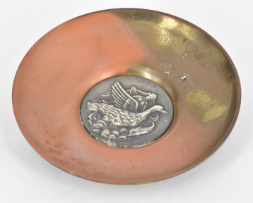 the central medallion depicting an embossed duck and a goddess on sterling silver by Lalaounis. Diameter dish 12cm, plaque 5cm. -