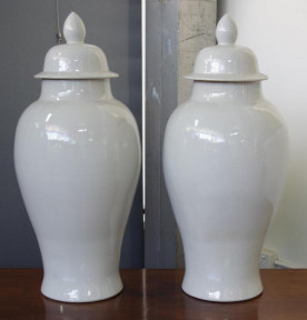 Lot Description:Pair of large blanc de chine lidded urns