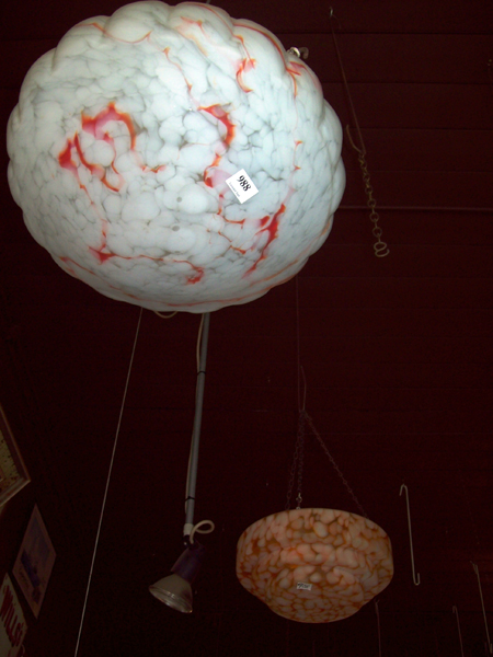 Lot Description:An Orange Art Deco Light Shade And A Red And White Glass Shade