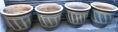 Lot Description:Four Ceramic Pots with Green & White Banding