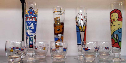 various designs including Ulrike Vater. Together with A SET OF SIX TUMBLERS, with cat and dog motif. Height 25cm, 8cm. -