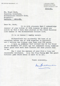 Lot #148 - A DON BRADMAN CORRESPONDENCE: An unique correspondence between Don Bradman to Nigel Ward of Norfolk, England